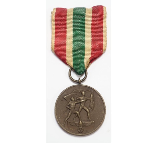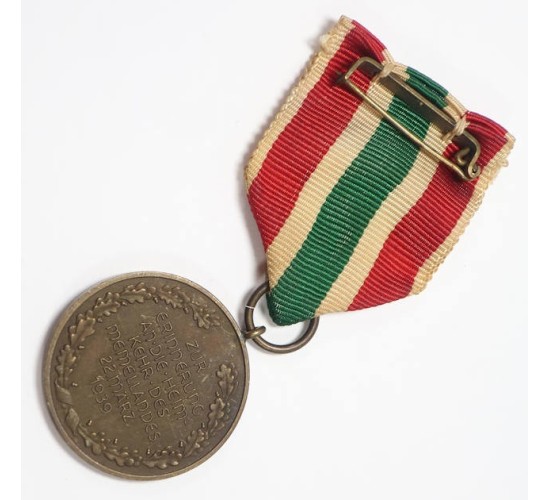 G640.)1939 MEMELLANDES CAMPAIGN MEDAL: a certifiably and positively original period sepicm3en6t. Has been examined and approved by two of the hobby's experts. Take a look too at the website attached below. The gem that we're offering here demonstrates all of the key features that we look for in an original period example. With coin-like bronze pendent showing crisp and perfect details. Mild age to the ribbon which is otherwise clean. Has typical German pin-back device. EXC++++