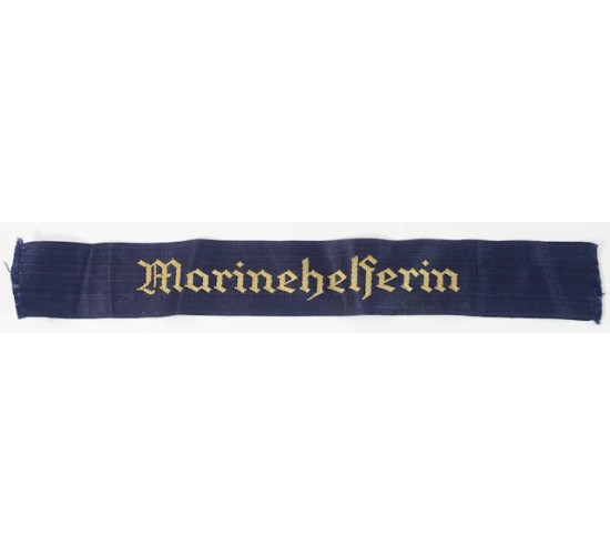 G564.)KRIEGSMARINE FEMALE VOLUNTEER'S CUFF-TITLE: has been cut down (by some idiot). Genuine 3rd Rch period specimen now 11" long. It's 35mm wide and shows BeVo machine embroidered 'Marinehelferin' (Naval Female Volunteer).